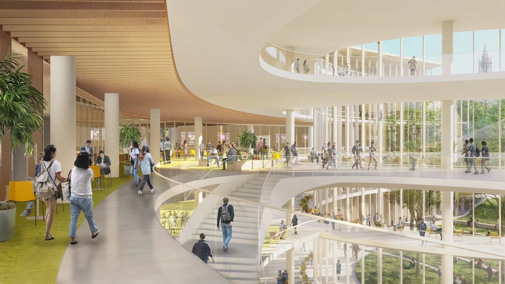 The facility includes convening spaces, as well as five floors of dedicated research laboratories, classrooms and auditoriums, seminar and conference rooms, offices, social kitchens, a public café, and a rooftop event space. The Gateway is set to open for the 2025-2026 academic year.