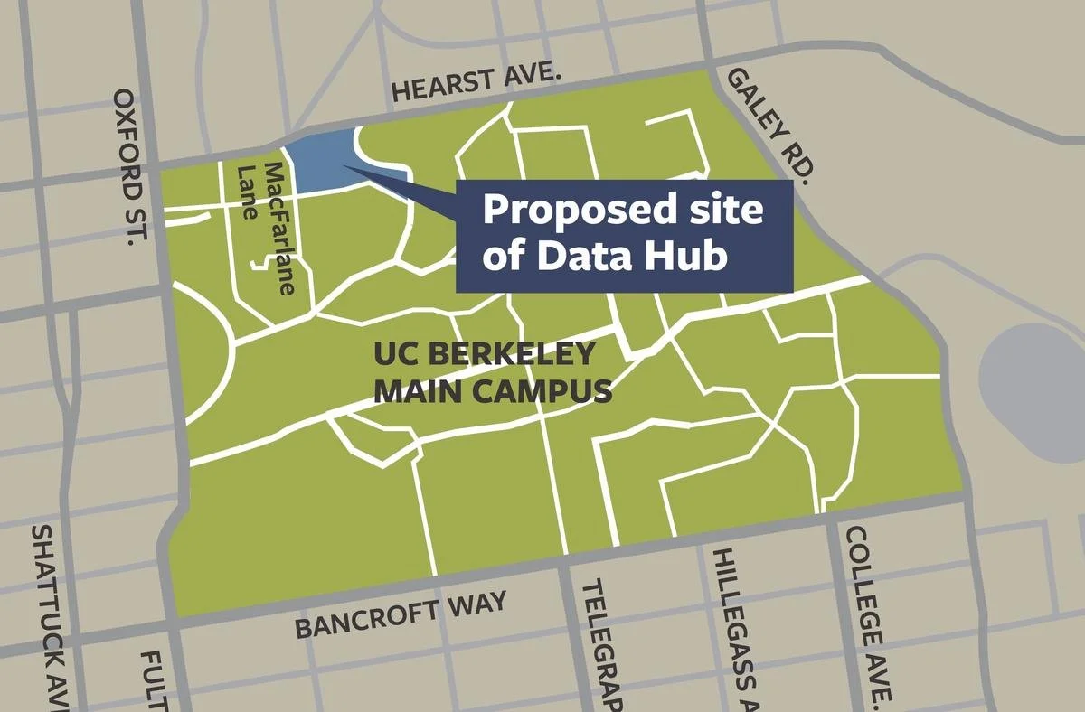 (R) The Data Hub located at the intersection of Hearst Avenue, Arch Street, and MacFarlane Lane. (Credit: UC Berkeley)